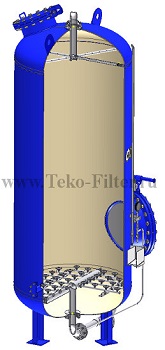 Корпус фильтров выполнен из углеродистой стали с антикоррозионным покрытием внутренней поверхности