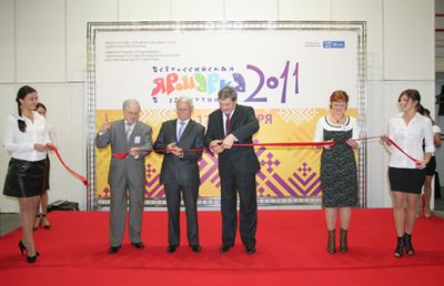 С открытием Ярмарки участников и гостей поздравили заместитель Председателя Правительства Удмуртской Республики А.Г. Коробейников, министр торговли и бытовых услуг Удмуртской Республики П.П. Пономарев, генеральный директор Удмуртской торгово-промышленной палаты Е.Ю. Вылегжанин, исполняющая обязанности генерального директора Выставочного центра «УДМУРТИЯ» Н.С. Крайняя.