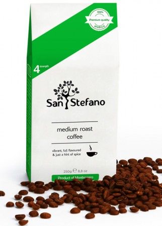 Ассортимент напитка представлен четырьмя вкусами кофейных смесей из бразильской и кенийской арабики. Кроме того, у покупателей будет возможность приобрести цельнозерновой кофе. Кофе «Сан Стефано» обжаривается и фасуется в республике Черногория, сообщает unipack.ru.