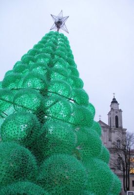 14 тысяч пластиковых бутылок использовала дизайнер Иоланта Шмидтине для создания 14-метровой елки в городе Каунас. Для дерева использовались не целые бутылки, а только донышки, которые мастер насадила на каркас. Ночью включается иллюминация, и елка смотрится впечатляюще, пишет unipack.ru.