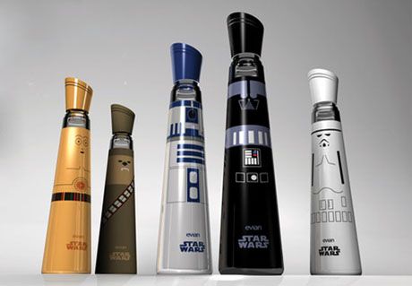 Форма стеклянных бутылок с водой позволяет «орудовать» ими, как «лазерными мечами», а оформление предлагает определиться, на какой стороне сражаться — Джедаев или Ситхов.