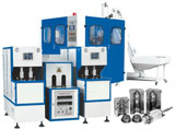 ![]() | ПЭТ бутылок серии СМ-A4 Оборудование предназначено для выдува ПЭТ (полиэтилентерефталат) бутылок различного назначения, которые могут использоваться для розлива очищенной, минеральной, газированной воды, различных напитков, пива, кваса, молока, некоторых химических веществ и прочей продукции. На сегодняшний день ПЭТ бутылки являются самой популярной упаковкой, они обладают рядом преимуществ, к которым относятся лёгкость, прочность, низкая себестоимость материала, широкие возможности по выбору формы и цвета бутылки. Модель CM-A4 Теоретическая производительность, БВЧ 3200-4000 Допустимые параметры выдуваемой тары, мм Объём, мл 100-2000 Диаметр горла 15-38 Диаметр корпуса 20-100 Высота 50-350 Количество гнёзд в прессформе, шт. 4 Толщина прессформы, мм 240 Размеры прессформы, мм 360 Х 370 Электропитание, В (Гц) 220 (50) 380 (50) Автоматы выдува серии CM-A состоят из девяти основных частей: загрузчика преформ, ориентатора преформ, устройства подачи преформ, системы транспортировки преформ, инфракрасного узла разогрева, воздушной системы, штоков, замка прессформы и устройства автоматической выдачи бутылок. 1. Загрузчик преформ: Основными частями узла являются загрузочный бункер и подъёмник с транспортной лентой. Загрузочный бункер имеет форму перевёрнутого конуса, что препятствует преформе застревать в нём. Специальная конструкция транспортной ленты равномерно и в достаточном объёме подаёт преформы на ориентатор. Количество подаваемых преформ можно настраивать путём бесступенчатой регулировки двигателя транспортной ленты. Загрузчик преформ имеет изолированную конструкцию, исключается вероятность загрязнения преформы. 2. Автоматический ориентатор преформ: Ориентатор состоит из наклонного ковша, направляющих валов, лопастей и прочих деталей. Подаваемые загрузчиком преформы соскальзывают по поверхности ковша на направляющие валы, где под тяжестью собственного веса переворачиваются горловиной вверх, корпус преформы проваливается между двумя направляющими валами. Преформа, которая не занимает необходимое положение, отбрасывается лопастями обратно на поверхность ковша и заново подаётся на валы. Сгруппированные преформы поступают в механический зажим устройства подачи преформ и подаются на систему транспортировки. 3. Устройство подачи преформ: Устройство подачи преформ по средствам механического захвата помещает зажатые между направляющими валами ориентатора преформы в систему транспортировки. Таким образом, преформы попадают в основной производственный узел. 4. Система транспортировки преформ: Узел состоит из зажимов и транспортировочных пластин. Зажимы оснащены специальными пружинами, которые прижимают резьбовую часть горловины преформы к кольцу держателю, обеспечивая тем самым загрузку, выгрузку и транспортировку преформ внутри основного производственного узла. Каждая пластина имеет по два зажима. Преформы, проходя через основной производственный узел, разогреваются и подаются в прессформу, где и выдуваются в готовые бутылки. 5. Инфракрасный узел разогрева: Основными частями узла являются печь разогрева и система охлаждения. Печь разогрева использует специальные позолоченные инфракрасные тэны с экономичным расходом электроэнергии. Температура и время разогрева настраиваются при помощи компьютера и контролируются отдель