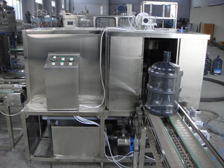 Оборудование линии не требует специального монтажа, может эксплуатироваться непосредственно после размещения на рабочем месте, подключения соответствующего электропитания, сжатого воздуха, установки заземления. Так как бутылки 19л являются оборотной тарой многократного использования, технология розлива требует как внешней, так и внутренней мойки тары. Линия QGF-200 представляет собой комплекс автоматических машин, требующих минимального участия человека. Оператор вручную устанавливает пустой бутыль на подающий транспортёр, все остальные процессы осуществляются в автоматическом режиме. Первым этапом является удаление остатков старой пластиковой пробки с горловины возвратной тары, это осуществляется по средствам автоматического декапера BG-1.